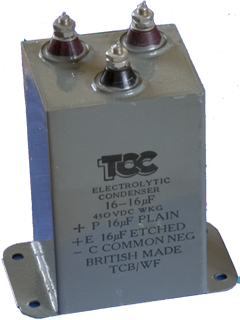 These drop in replacement parts fit directly in the space of the original TCC 715525 16µF + 16µF 450V capacitor without cutting or drilling or soldering and use all 4 mounting holes like the original which prevents strain on the perspex badge and they don't look out of place